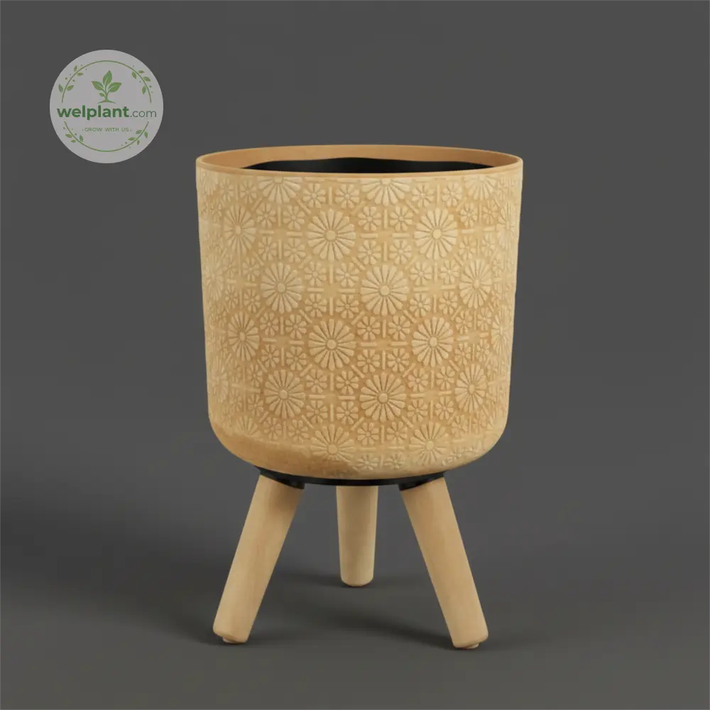 The HTP Series is made for people who love detail. Each pot has a beautiful, raised “Diamond Pattern” that looks like expensive wallpaper or carved stone. The deep forest green color gives it a natural and high-end feeling. You can choose the simple flat-bottom pot for windowsills, or the tripod wooden leg version to give your plants some extra height.